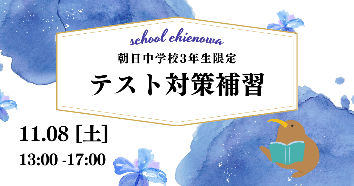 みなさん こんにちは! 東刈谷小学校から徒歩1分「スクールちえのわ」 副室長の岡田です。 朝日中学校3年生 定期テスト対策集団授業のお知らせ! 今回の 2学期期末テスト では、 朝日中学校の3年生が他学年より一足早くテス …