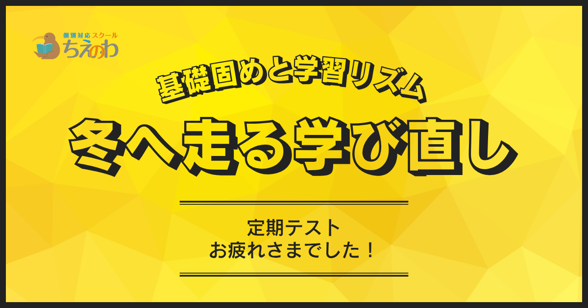 みなさん こんにちは! 東刈谷小学校から徒歩1分「スクールちえのわ」 副室長の岡田です。 来週はいよいよ2学期の期末テスト (篠目中では「第3回定期テスト」)が実施されます。 1年間の集大成となる大切なテスト、 どの学年 …